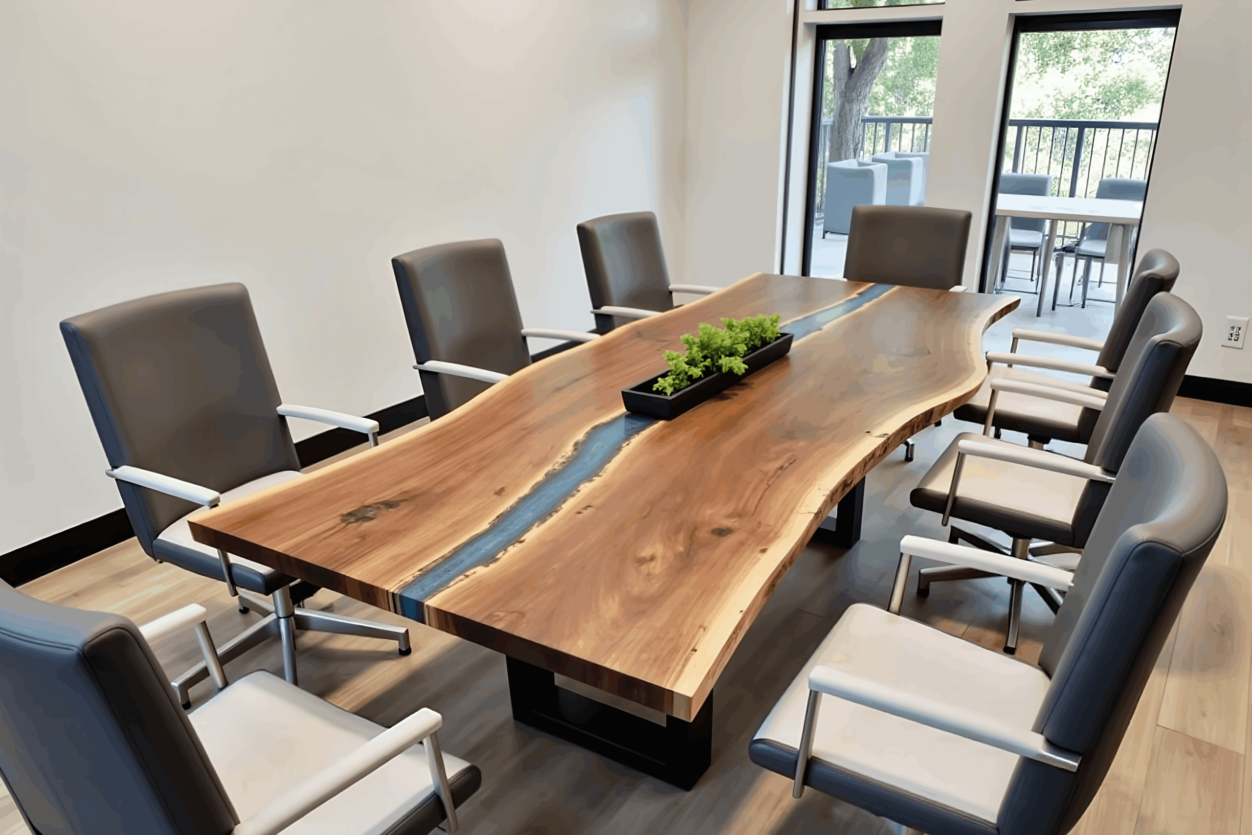 Custom Black Walnut Conference Table With a Blue Epoxy River.
